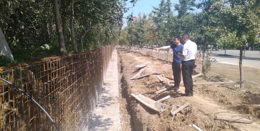 会后同跟踪审计单位实地查看了圣井校区汛期倒塌围墙维修工程施工进度,要求跟踪审计单位保留好施工影像资料,为结算审计打好基础。该工程合同造价71万元,目前已完成拆除、垫层、挡土墙钢筋绑扎工作。